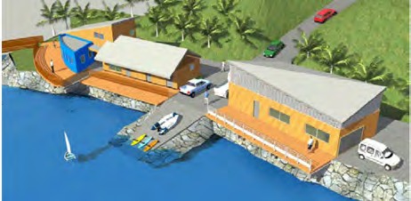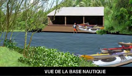La base nautique de Petit-Bourg a pour vocation d’accueillir les pratiquants d’avirons qu’ils soient en clubs, scolaires ou professionnels. Elle sera implantée sur le site actuel de la pointe à Bacchus. L’accès ainsi que le talus seront repris dans le cadre de ce projet. Vu les contraintes topographiques et l’étroitesse du terrain, le projet se développe tout en linéaire avec : un hangar technique pour la réparation des avirons, une salle de musculation, une zone administrative et des vestiaires – sanitaires adaptés et accessibles à tous. Afin de répondre à l’accueil des handisports, cette base sera aménagée d’une rampe de mise à l’eau.