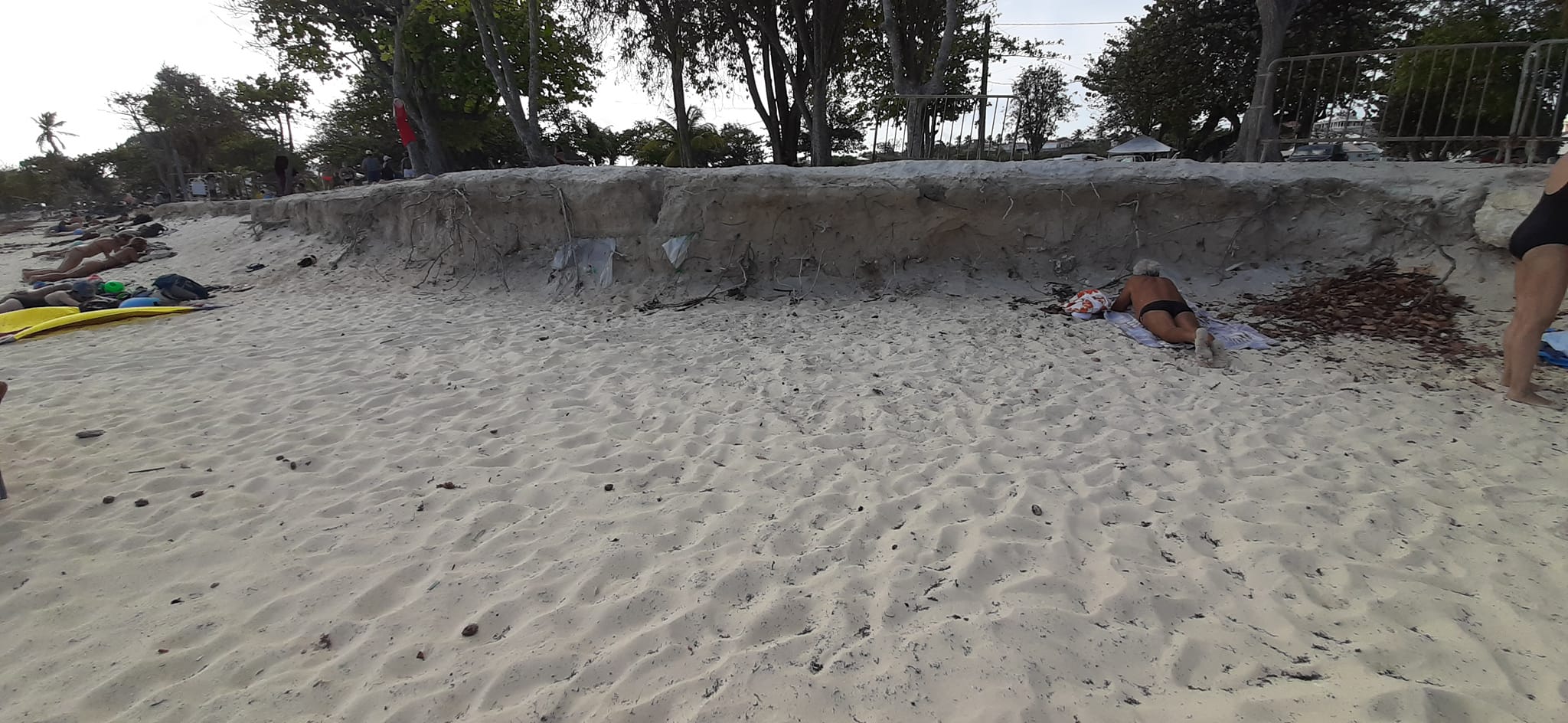 En Guadeloupe, “4 400 sites archéologiques sont recensés et parmi eux, 800 se situent à moins de 100 mètres du bord de mer” explique Monsieur Modat, donnant l’exemple de la plage très touristique de la commune de Saint-François, les Raisins clairs. Là, l’érosion a mis au jour au début des années 2010 un ancien cimetière d’esclaves, et les serviettes de plage tutoient les ossements qui affleurent (photo ci-dessus).