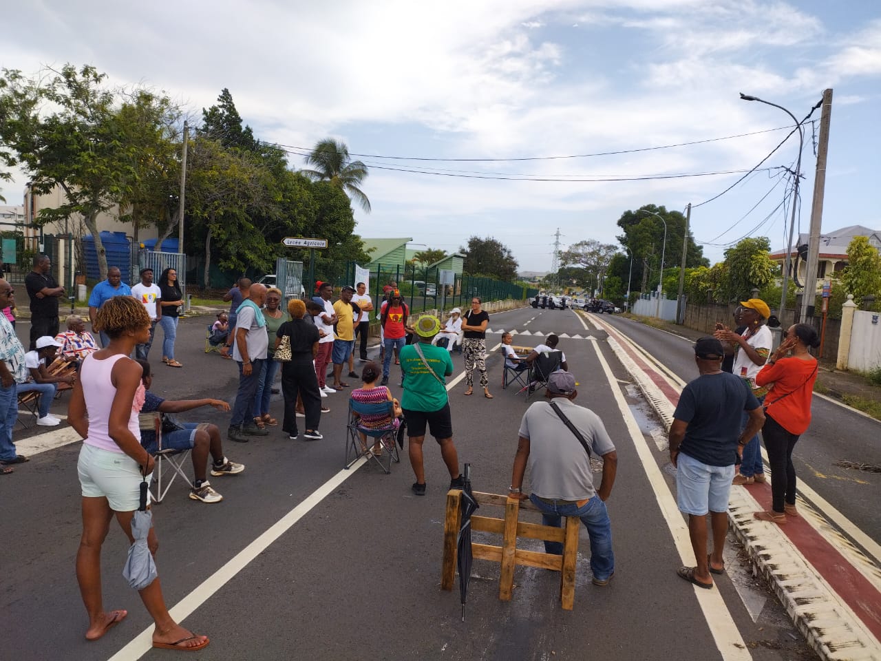 En grève depuis le 25 septembre, les manifestants du lycée agricole à Baie-Mahault s'installent dans la rue ce 18 octobre