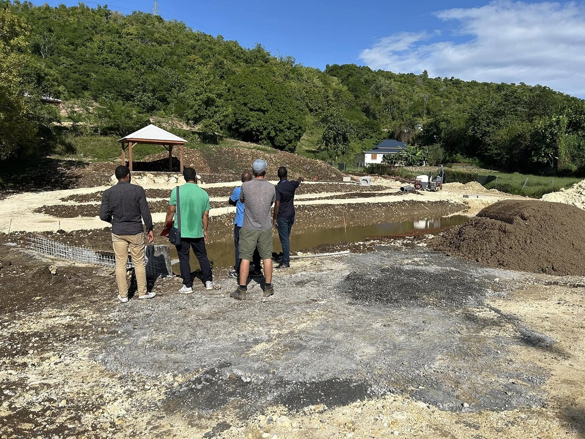 Deux carbets sont visibles, achevés par l’entreprise Coalys Guadeloupe fière de pouvoir montrer les belles charpentes traditionnelles. L’entreprise qui a la charge des constructions bâties bois pour un coût de 128 750 euros se réjouit du « bel espace naturel aménagé à venir ! » Les autres dépenses incluent 732 184 euros pour les travaux de terrassement et de voirie confiés à la société BMJ, 23 920 euros pour des aménagements paysagers réalisés par TPRB Environnement, et 53 000 euros pour l’ingénierie et la planification assurées par le cabinet Vialis Ingénierie.